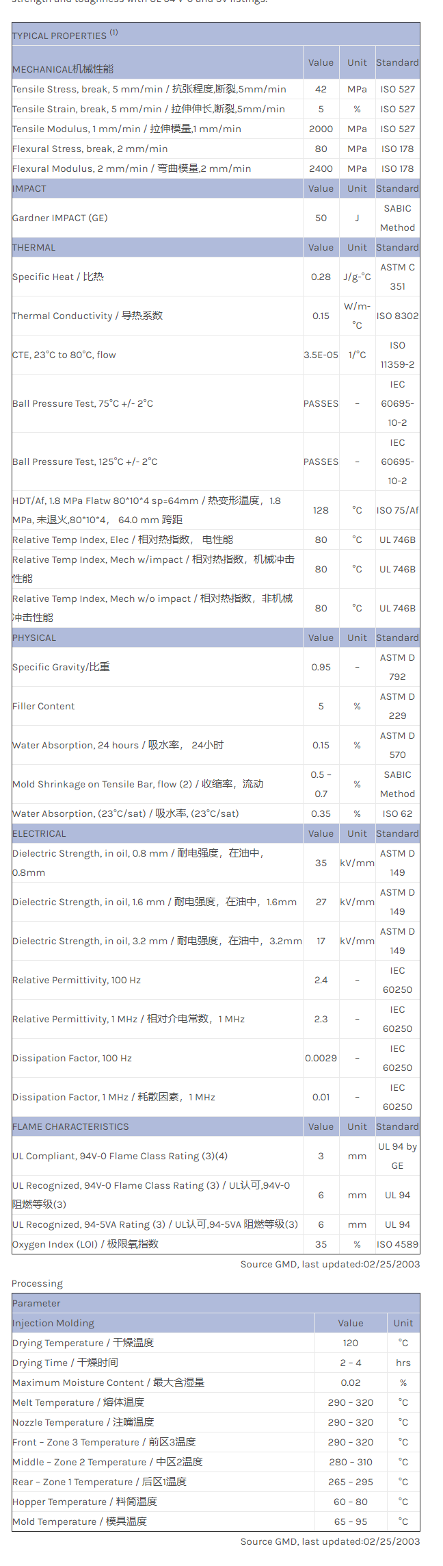 应用范围: 产品描述 LEXAN PC FL900S物性表 Foamable Lexan* FL900S polycarbonate resin is an ideal choice for structural components where load bearing capability at elevated temperature is a key requirement. It exhib