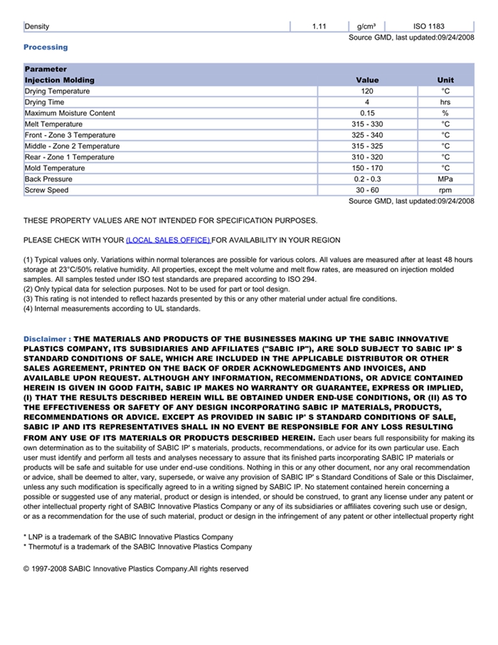 深圳LNP THERMOTUF U1000AIS物性表