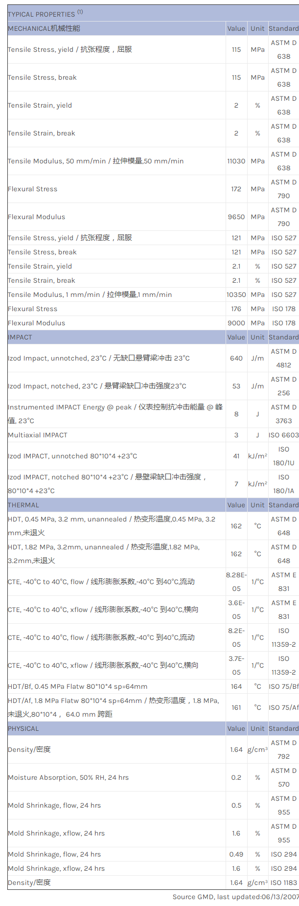 应用范围:产品描述LNP THERMOCOMP KF006XXC物性表LNP THERMOCOMP KF006XXC是一种聚甲醛(POM)共聚物材料,含有的填充物为玻璃纤维增强材料。