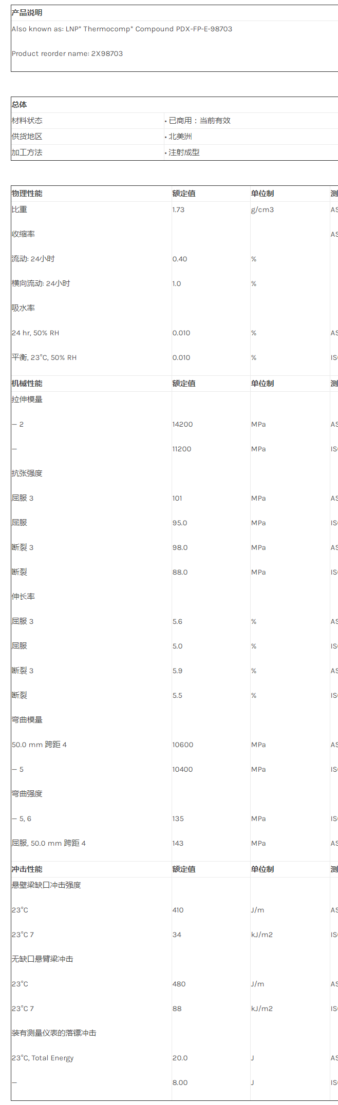 应用范围:产品描述LNP THERMOCOMP 2X98703物性表