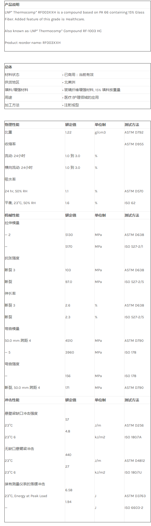 应用范围:产品描述LNP THERMOCOMP RF003XXH物性表