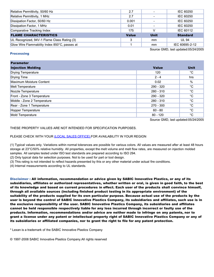 LEXAN PC ML3459E物性表