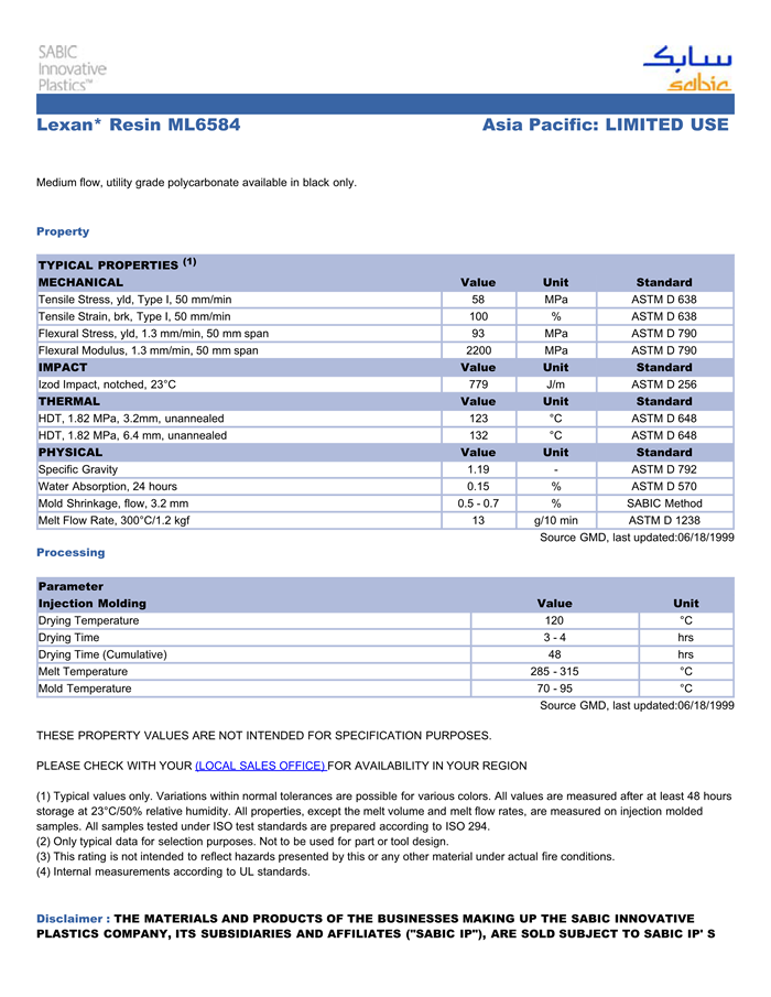 LEXAN PC ML6584物性表