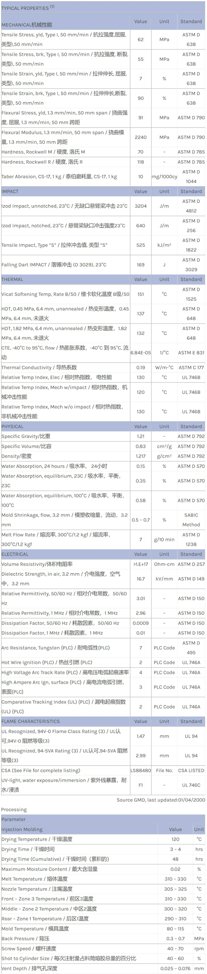应用范围:产品描述LEXAN PC 950物性表不透明,高黏度、优良的阻燃性。少烟、有毒气体排放量低。相关色号:950-701、950-C80325、950-OR8G004、950-5M2D002、950-GY8A161、950-NC、950-BK1D216、950-WH8F002、950-7B8D013、950-GY8G260