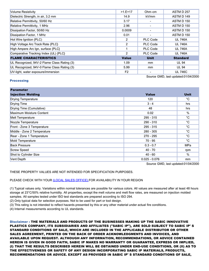 熔体流动速率MFR:10.5。改良的阻燃性能。内含脱模剂。