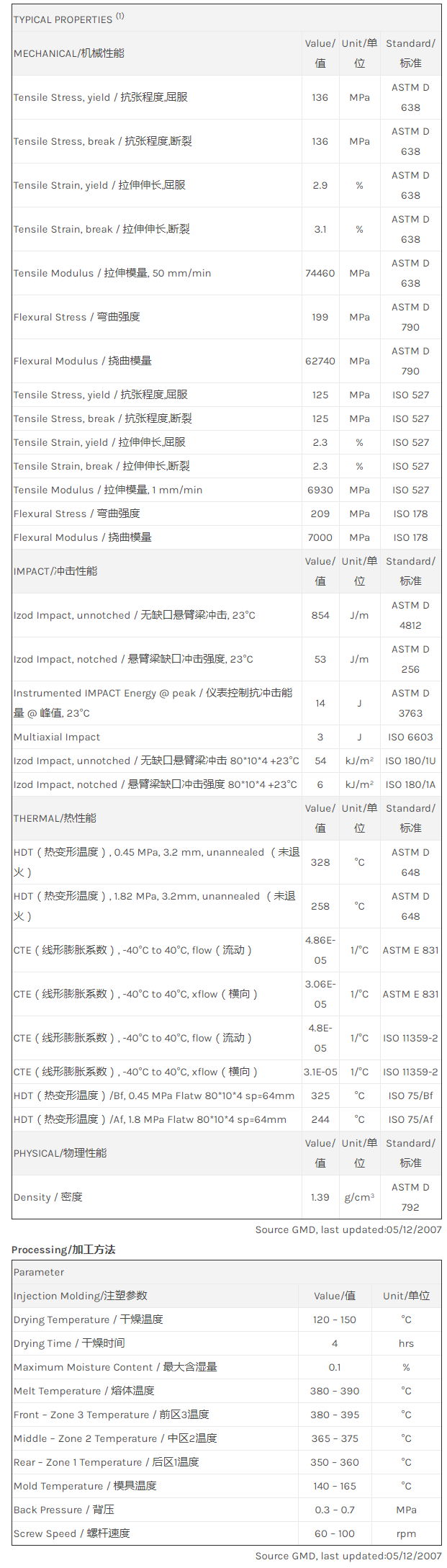 应用范围: 产品描述 LNP Thermocomp LF003物性表 LNP THERMOCOMP LF003是一种聚醚醚酮(PEEK)材料,含有的填充物为玻璃纤维增强材料。 LNP* Thermocomp* LF003 is a compound based on Polyetheretherketone resin containing Glass Fiber. Property/特性