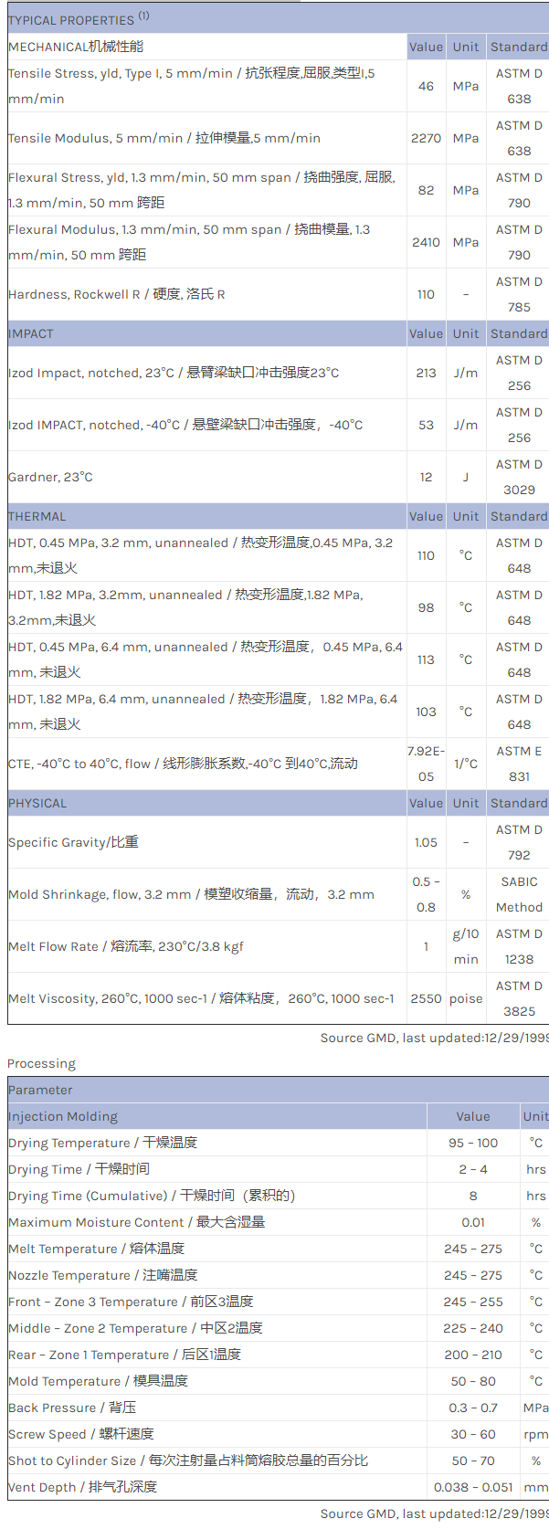 主要特点:甚高耐热性,中等抗冲击性及良好的强度特性。