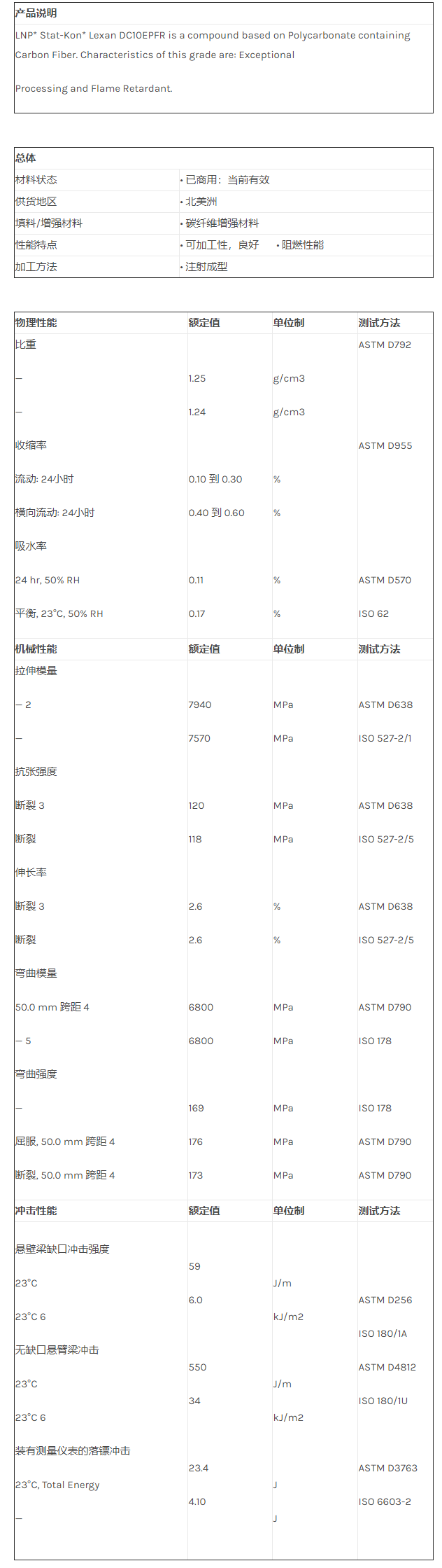 应用范围: 产品描述 LNP STATKON DC10EPFR物性表