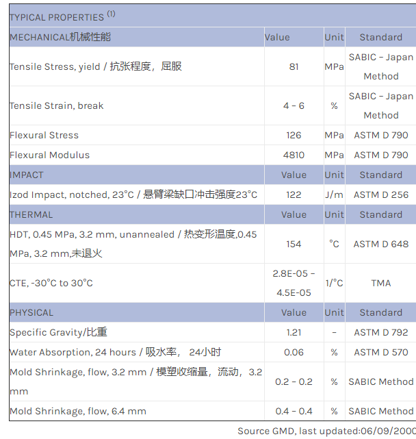 应用范围:产品描述NORYL PPO IGN5532物性表
