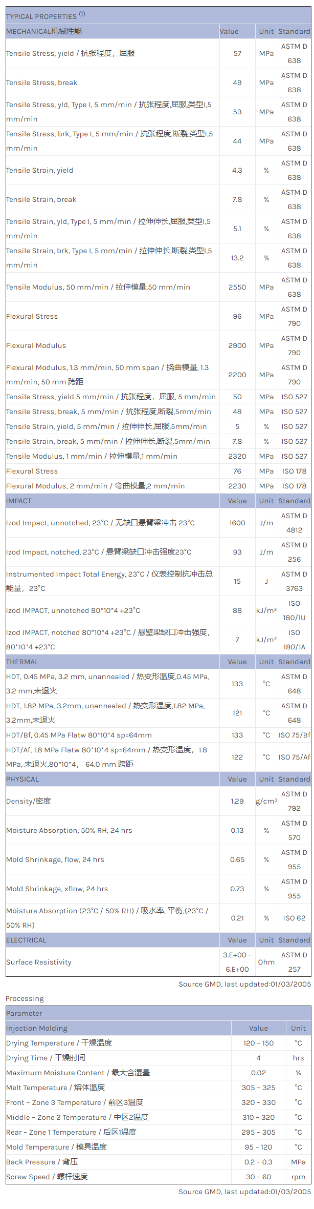 应用范围:产品描述LNP STATKON DS0029物性表LNP STAT-KON* DS0029 is a compound based on Polycarbonate resin containing Stainless Steel. Added features of this material include: Electrically Conductive.
