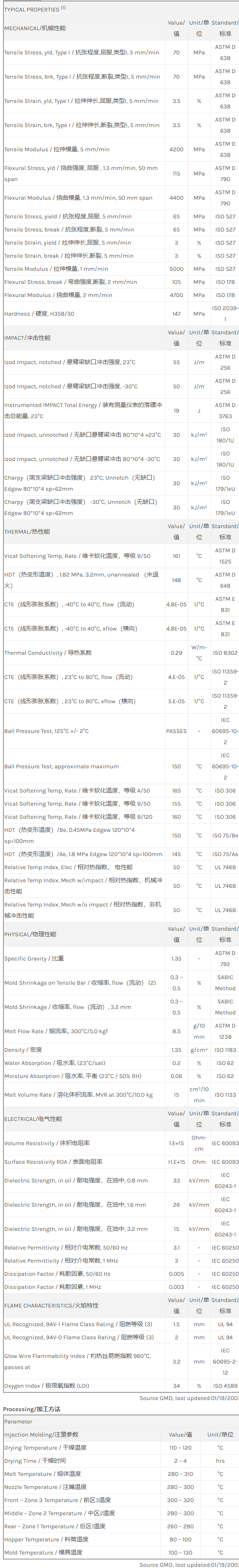 Noryl PPO V03550物性表