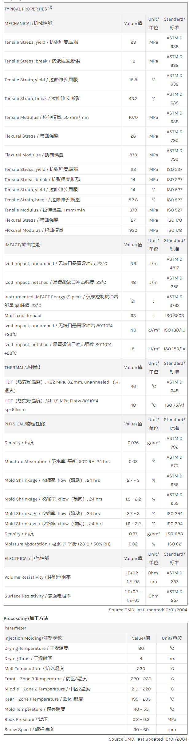 应用范围:产品描述 LNP Statkon FX98500C物性表 “LNP STAT-KON FX98500C是一种聚乙烯材料,含有的填充物为炭粉,加工方式为:注射成型。 LNP STAT-KON FX98500C的主要特性为:传导性。” LNP* Stat-kon* FX98500C is a compound based on Polyethylene resin containing Car