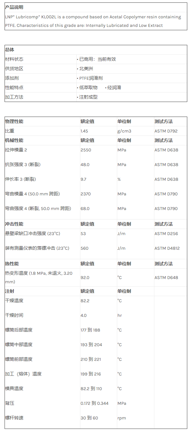 应用范围:产品描述LNP LUBRICOMP KL002L物性表