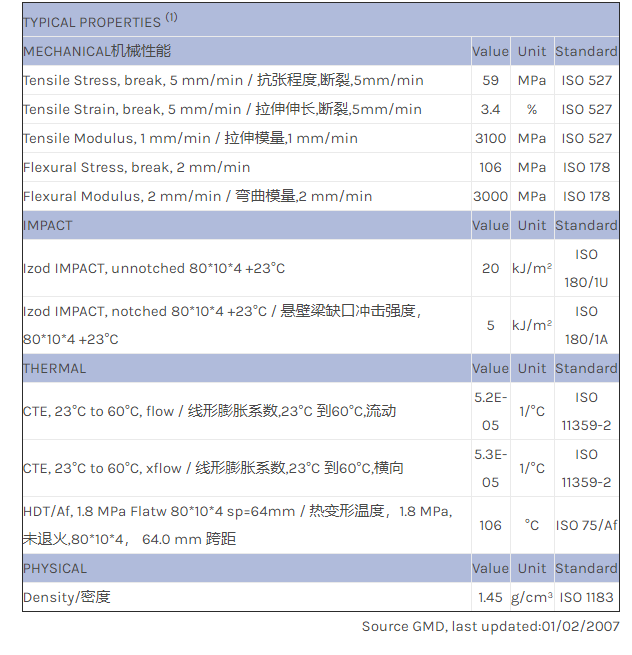 应用范围:产品描述LNP LUBRICOMP OL004物性表LNP LUBRICOMP OL004是一种线性聚苯硫醚产品,可以通过注射成型进行加工。特性包括:耐磨润滑线性聚合物结构