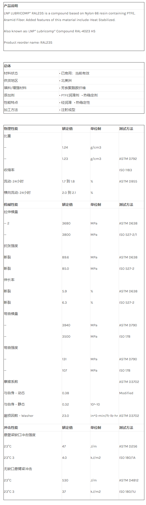 应用范围:产品描述LNP LUBRICOMP RAL23S物性表