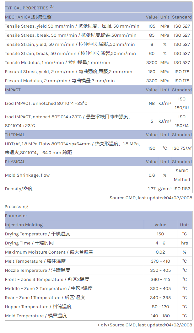 应用范围:产品描述LNP COLORCOMP E1000物性表LNP COLORCOMP E1000是一种聚醚酰亚胺(PEI)材料,加工方式为:注射成型。LNP COLORCOMP E1000的主要特性为:通过ROHS认证
