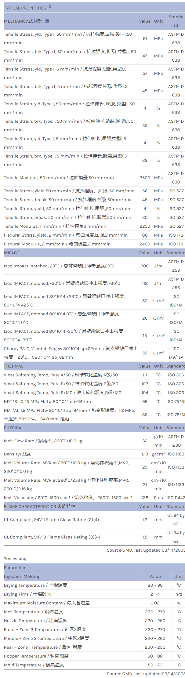 应用范围:产品描述Geloy ASA EXGY0057物性表Improved ASA/PC blend for high IMPACT, 1.5mm V0 applications. Improved UV performance aesthetically and physically compared to alternatives.