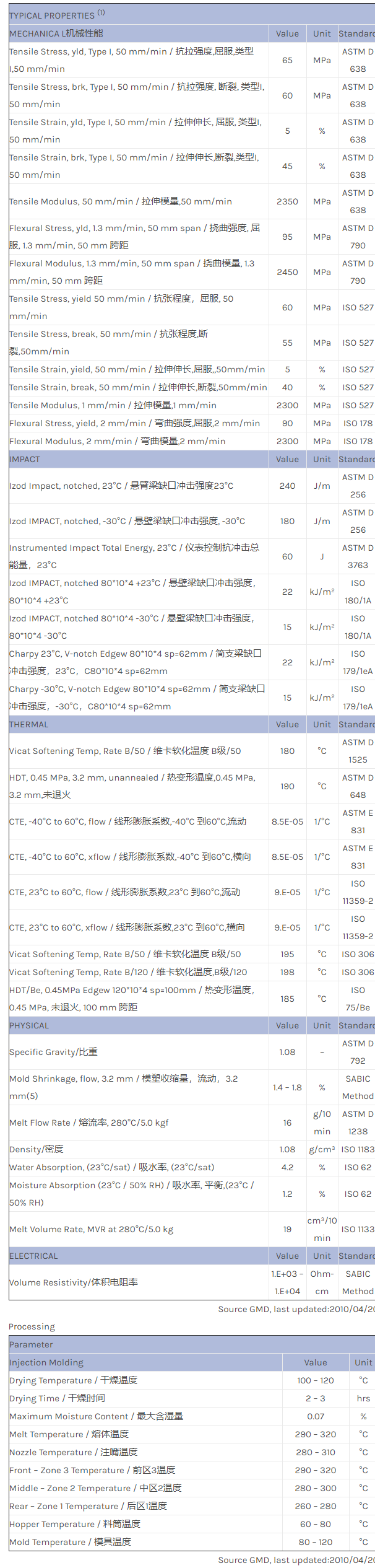 应用范围:产品描述NORYL GTX GTX989物性表NORYL GTX989 is a conductive and high heat material, especially designed for in- and on-line painted bodypanels and fenders in particular. This material combines impact performa