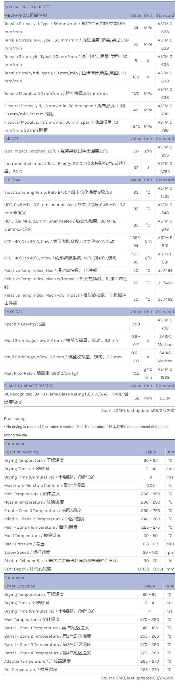 应用范围:产品描述Noryl PPX PPX7112物性表PPE+PP blend. Suitable for painted exterior automotive applications.