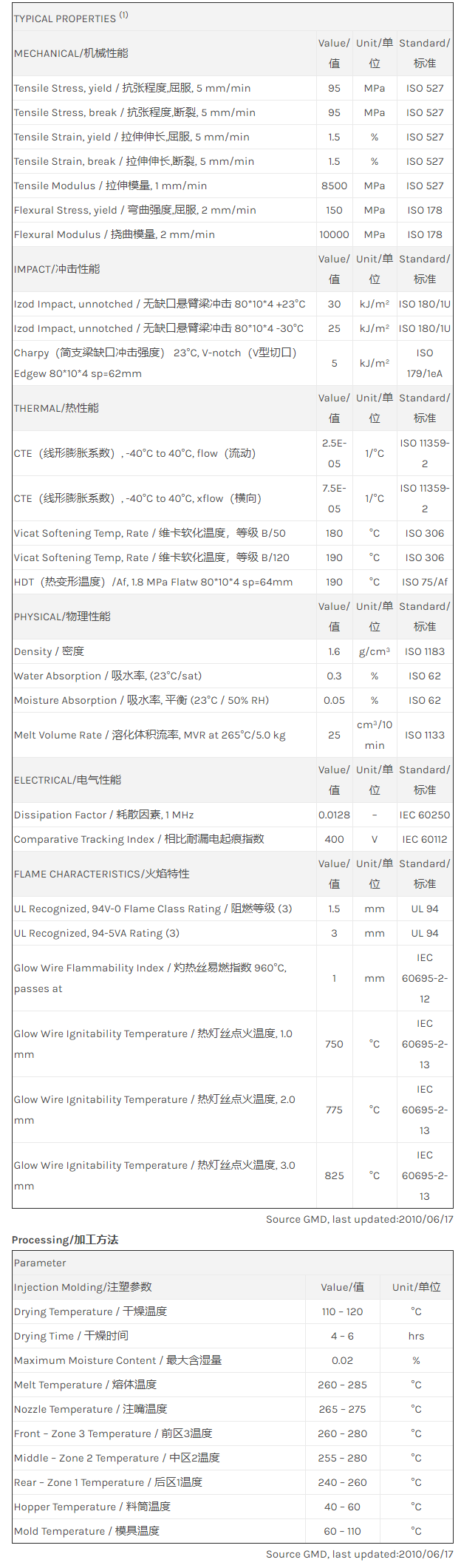“Valox ENH8560 resin是一种聚对苯二甲酸丁二酯+PET(PBT+PET)材料,含有的填充物为30%玻璃纤维增强材料,加工方式为:注射成型。
